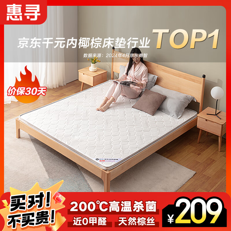 惠寻 京东自有品牌 椰棕床垫硬棕垫薄床垫宿舍1.35*1.9米5cm棕芯3cm价格:239.00元!