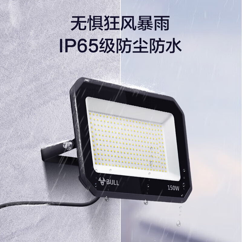 公牛(BULL)LED投光灯户外庭院工厂园林灯露营灯 IP65防水等级150W-6500K白光价格:279.00元!