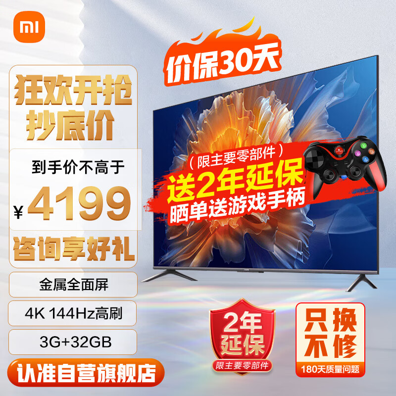 小米(MI)电视S75 144Hz超高刷 4K超高清画质 3G+32G超大存储 MEMC运动补偿 双路HDMI2.1 游戏电视机价格:4199.00元!