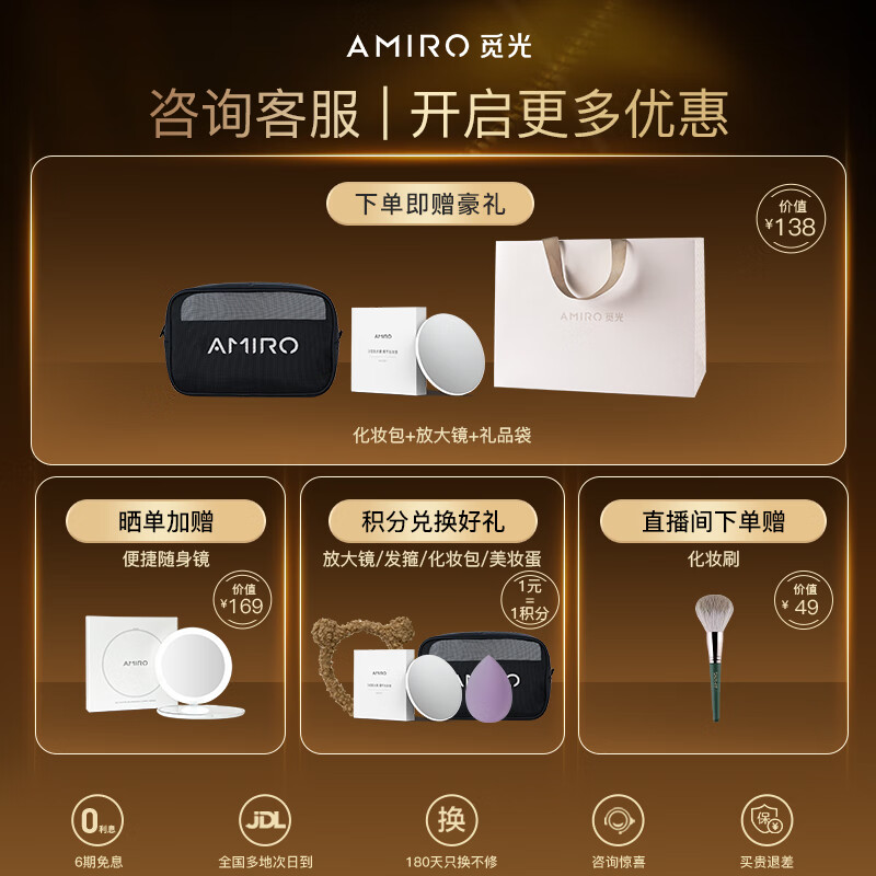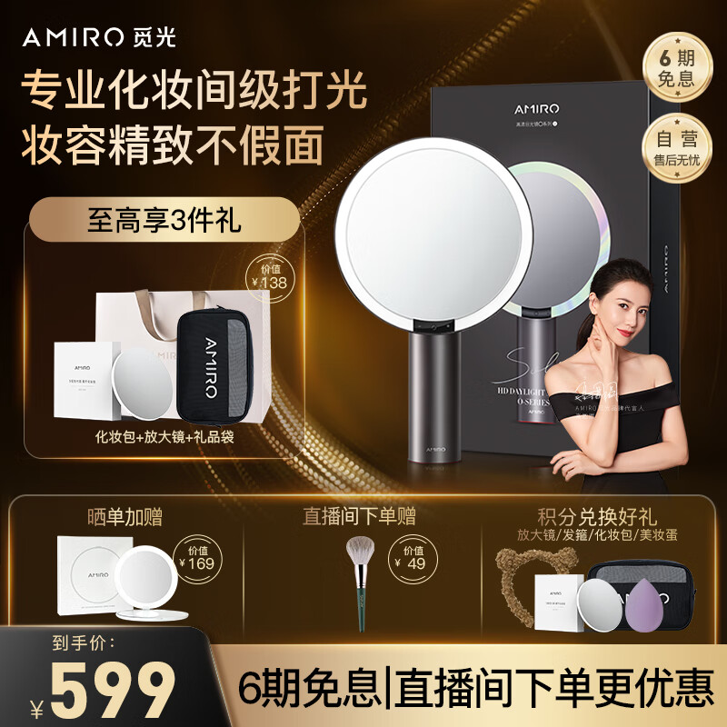 AMIRO觅光化妆镜带灯led日光梳妆 美妆镜子补光智能 桌面 七夕情人节生日礼物送女生老婆实用 小黑镜价格:699.00元!