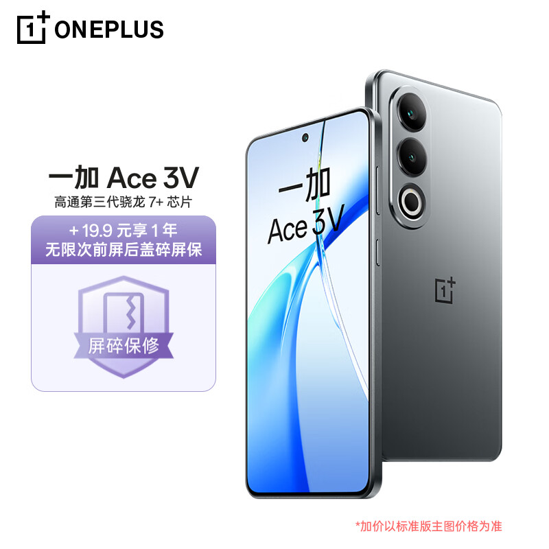 一加 Ace 3V 16GB+512GB 钛空灰 高通第三代骁龙 7+ 芯片 OPPO AI 5G直屏游戏手机【1年无限次屏碎保】价格:2618.90元!