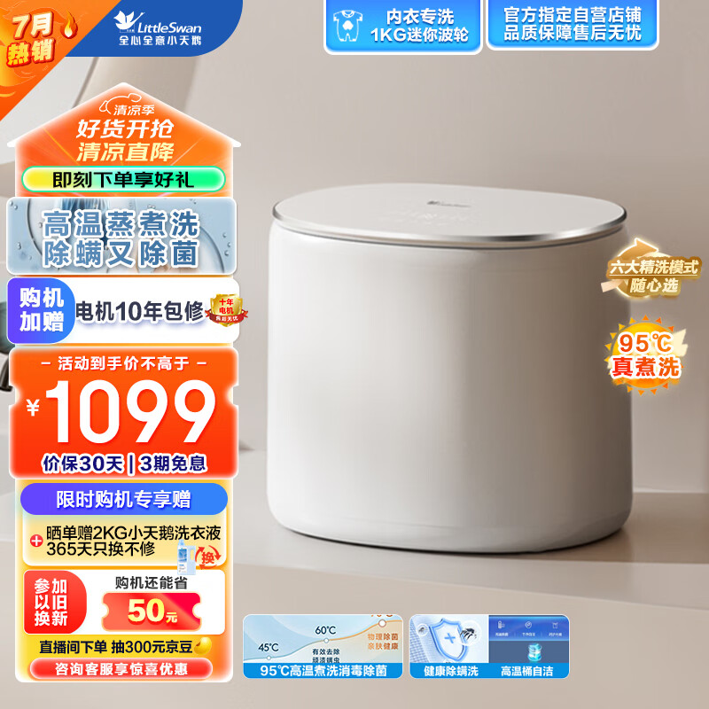 小天鹅(LittleSwan)1KG迷你洗衣机全自动 内衣裤洗衣机 小型迷你婴儿洗衣机 健康除螨洗 TNB10V0WE 健康桶自洁价格:1099.00元!