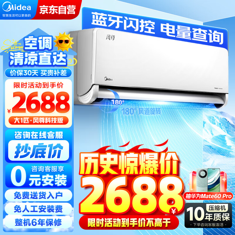 美的(Midea)空调大1匹挂机 风尊科技版 新一级能效 变频冷暖 电量查询 壁挂式 KFR-26GW/N8MXC1 卧室书房空调价格:2688.00元!