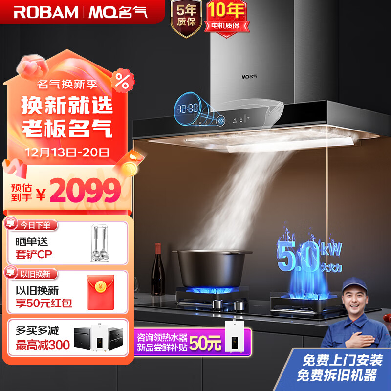 4、名气产品吸力不错,开起来厨房少了很多油烟了,安装师傅上门很快,家里人都说买的很值!
