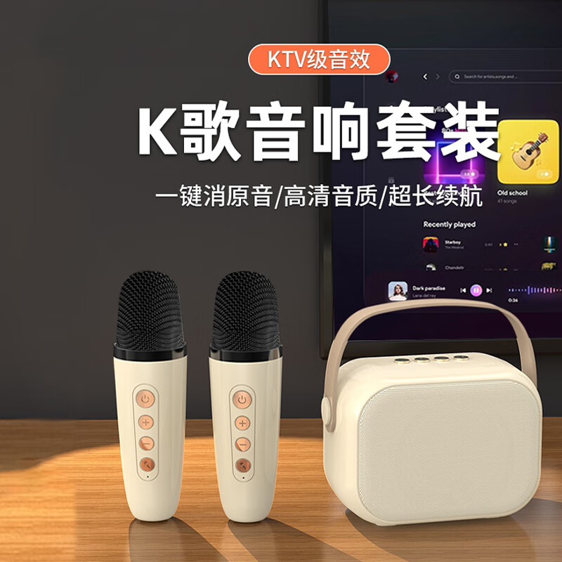 雅兰仕(EARISE)S53无线蓝牙音箱户外大音量迷你音响便携式带麦克风话筒k歌家庭KTV 旗舰款 米白价格:129.90元!