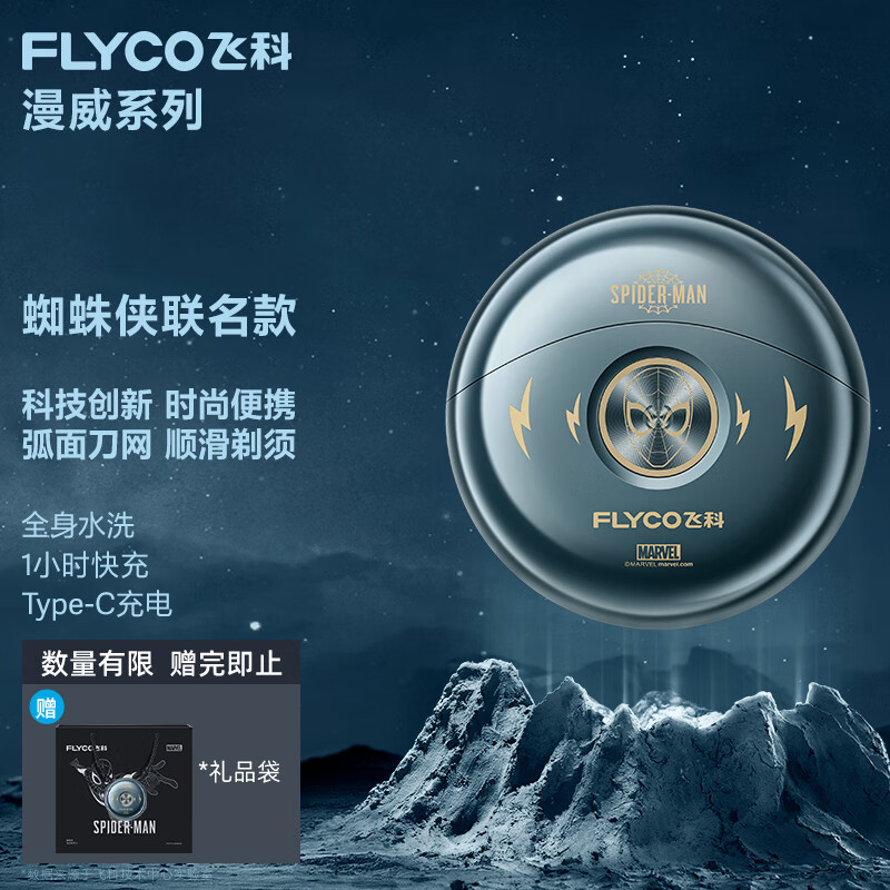 飞科(FLYCO)电动剃须刀男士小飞碟刮胡须刀迷你须刨便携双头FS893全身水洗送父亲男友生日节日礼盒礼物送长辈 FS893漫威系列【蜘蛛侠联名款】价格:269.00元!
