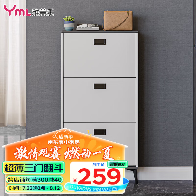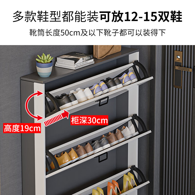 雅美乐鞋柜家用门口 三门简约超薄翻斗玄关走廊入户门厅放鞋柜价格:339.00元!
