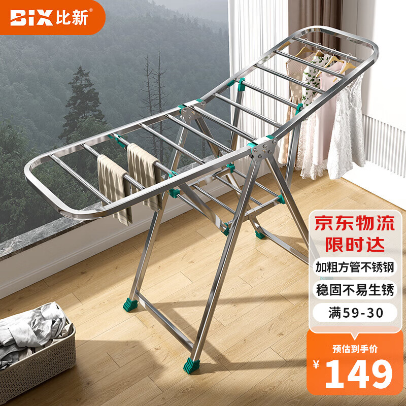 比新晾衣架落地晒衣架挂衣架室内晾衣杆阳台不锈钢晾晒被架BX-L4401价格:149.00元!