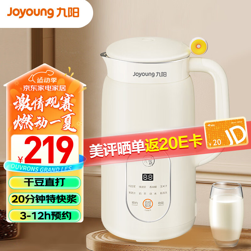 九阳(Joyoung)破壁机0.6L轻巧容量豆浆机 细腻免滤3-12h预约一键烧水易清洗多功能料理机DJ06X-D2526价格:219.00元!