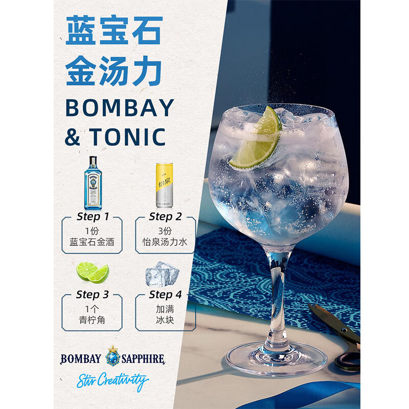 孟买蓝宝石(Bombay) 洋酒 英国 杜松子酒 百加得蓝宝石金酒750ml 调酒必备价格:105.00元!