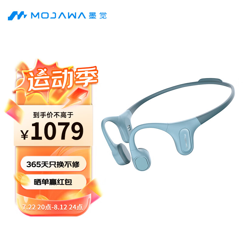 墨觉(MOJAWA)Run Plus 骨传导蓝牙耳机 开放式不入耳 游泳跑步骑行 智能降噪长续航 8级深度防水 瀚海蓝价格:1199.00元!