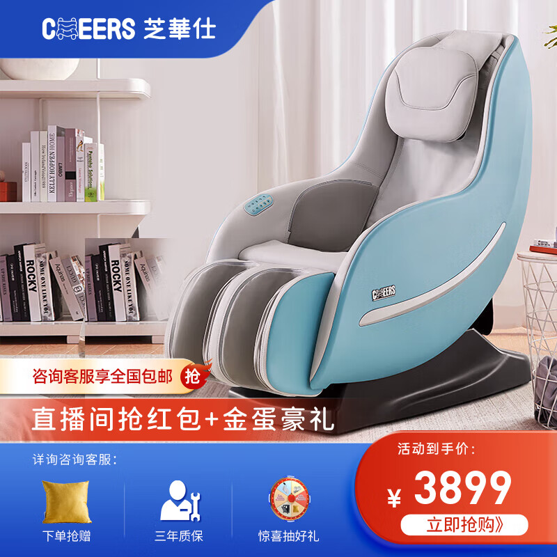 芝华仕(CHEERS)头等舱按摩椅送礼家用全身电动多功能太空舱小型迷你按摩椅节日送礼 M2050 天青色-现货发货价格:3899.00元!