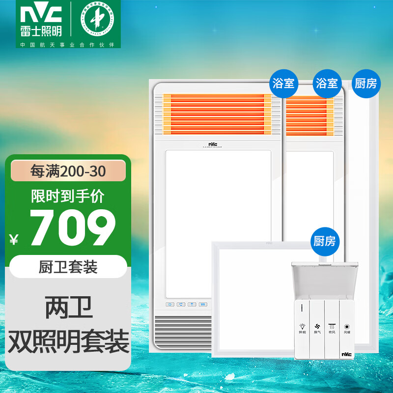雷士(NVC)多功能风暖浴霸风暖排气扇照明一体暖风机浴室取暖器+面板灯套餐C价格:799.00元!