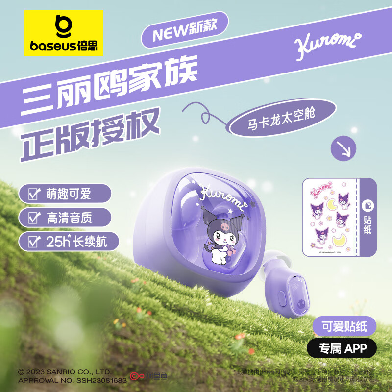 倍思WM02真无线蓝牙耳机 【三丽鸥正版授权】 佩戴舒适音乐通话生日礼物适用苹果小米华为 库洛米 紫价格:119.00元!