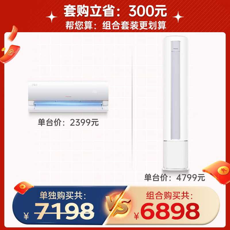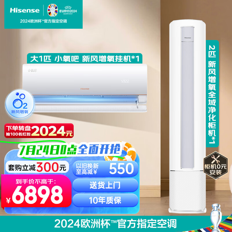 海信(Hisense)新风增氧空调套装 一室一厅 全域净化紊流柔风一级能效客厅柜机卧室家用挂机(大1匹+2匹)价格:6898.00元!