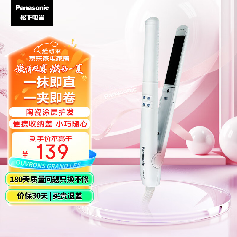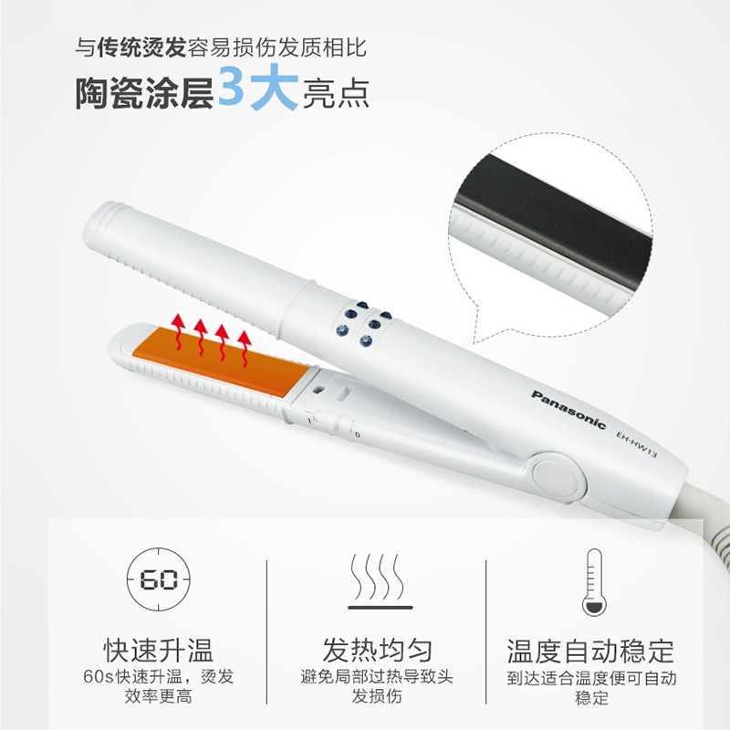 松下(Panasonic)卷发棒烫发夹直发棒 卷/直两用烫卷拉直发神器刘海夹板男女迷你小电直发夹板 送礼物EH-HW13-W白价格:139.00元!