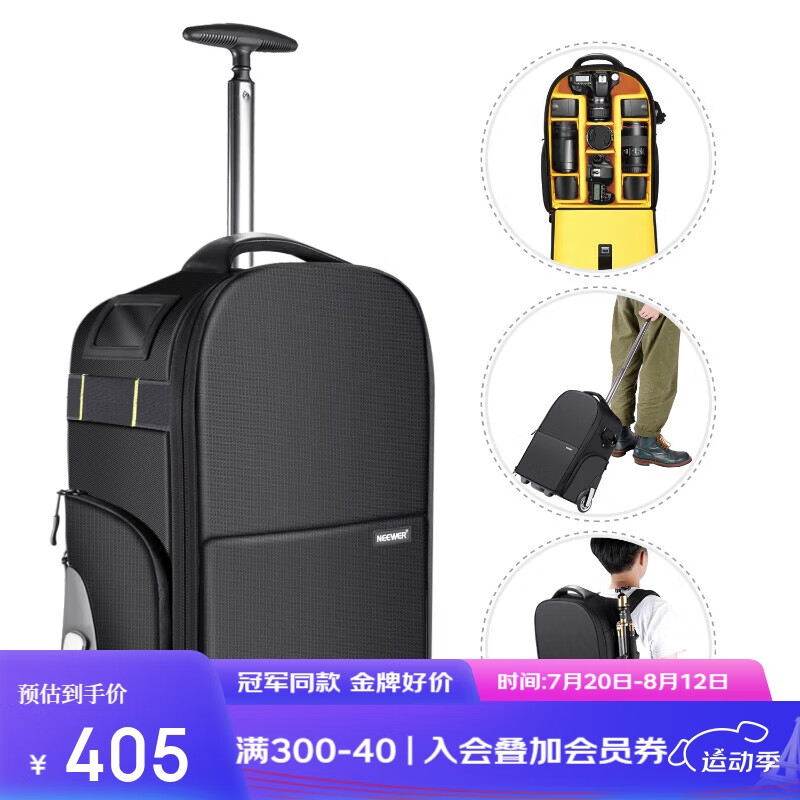 纽尔(NEEWER)NW-8903拉杆箱相机包双肩包带滚轮大容量专业摄影器材箱户外旅行摄影包单反包相机防水防潮防震价格:444.10元!