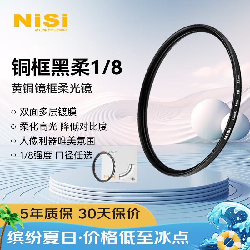 耐司(NiSi)1/8黑柔滤镜 62mm ex铝框柔光镜 八分之一柔化镜 柔焦镜 朦胧镜 人像拍摄美颜镜微单相机单反价格:178.00元!