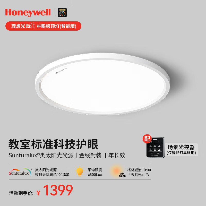 霍尼韦尔(Honeywell)客厅卧室护眼吸顶灯LED全光谱防蓝光防频闪护眼灯具理想光系列 02BPro 45W(适用8-12㎡)价格:1748.75元!