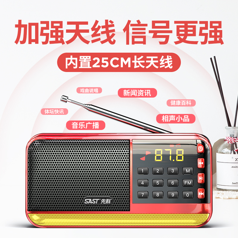 先科(SAST)V30黑色豪华版 收音机老年人充电式插卡迷你小音响便携式mp3随身听16G内存卡套装价格:109.00元!
