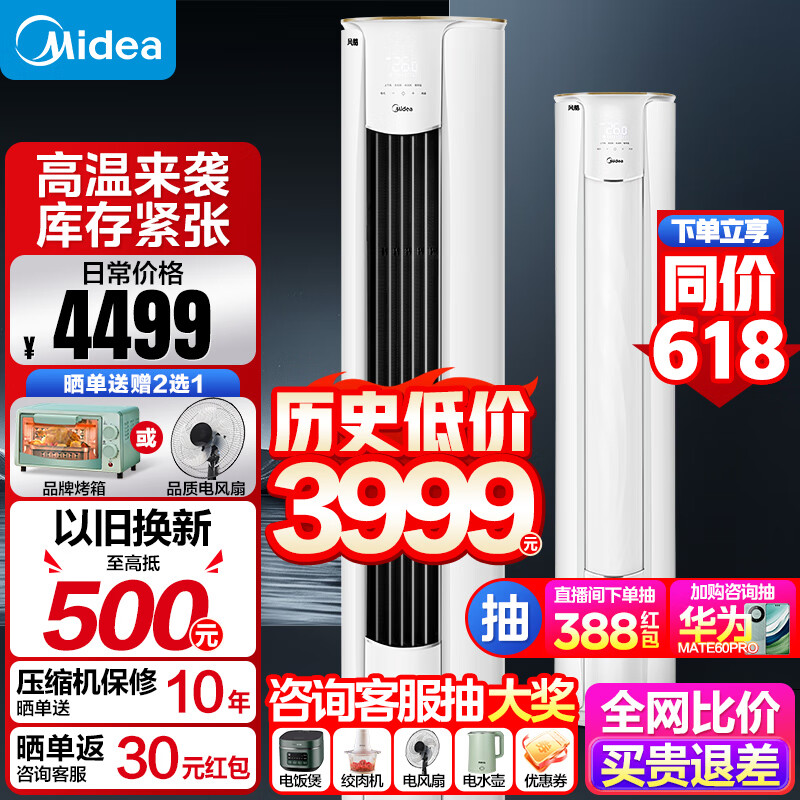 美的(Midea)空调大2匹 大风口风酷新能效 变频冷暖 客厅空调立式柜机纯白色大风量圆柱家用空调价格:3999.00元!