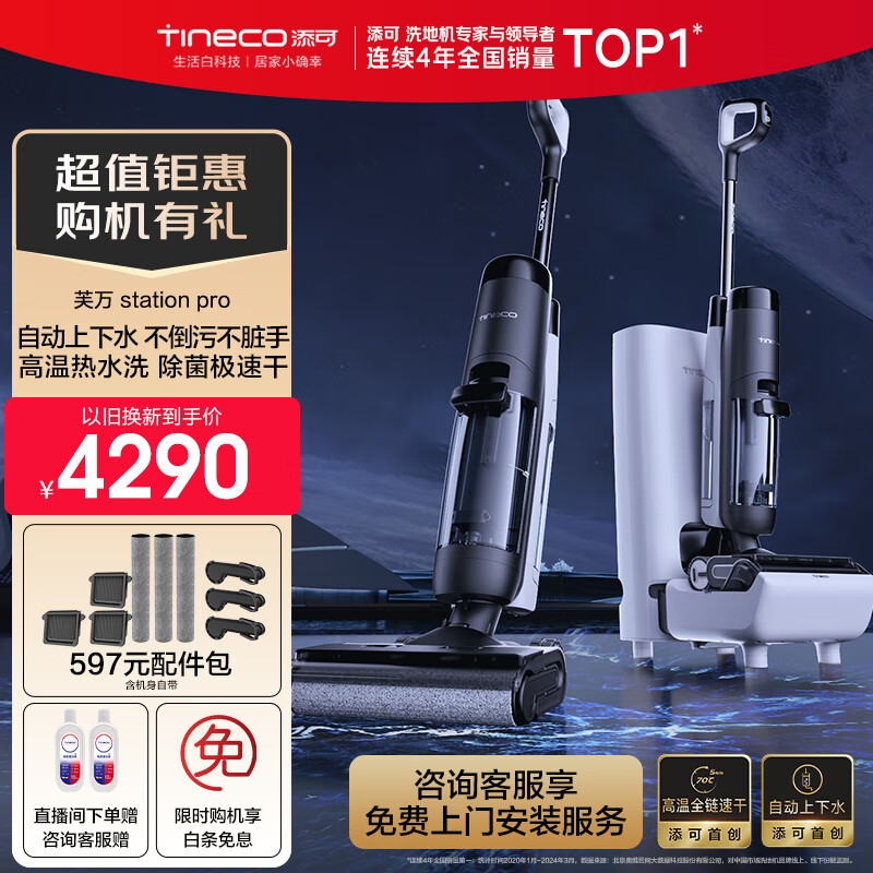 添可(TINECO)无线智能洗地机芙万Station Pro 全自动上下水高温除菌全链速干手持家用扫拖一体自清洁吸尘洗地机价格:4990.00元!