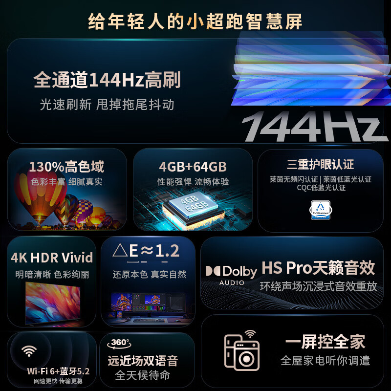 Leader海尔智家出品 L65F6 Pro 65英寸4K超高清电视144Hz高刷4+64G平板液晶智慧屏+安装服务【送装一体】价格:2838.00元!