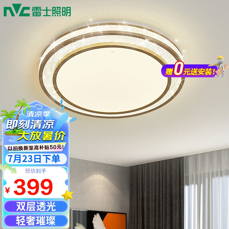 雷士(NVC)LED吸顶灯轻奢浪漫书房餐厅卧室灯具璀璨光效三段调光灯饰价格:399.00元!