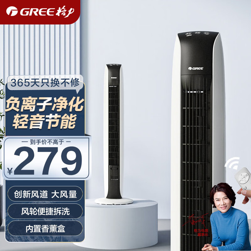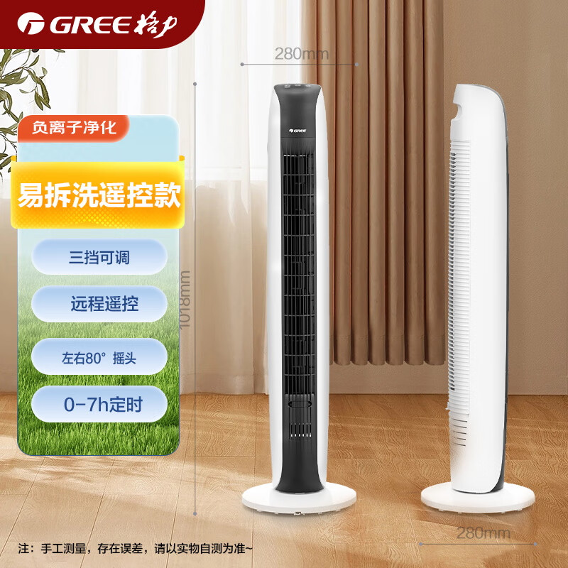 格力(GREE)【负离子净化】遥控电风扇塔扇风轮易拆洗节能轻音低噪家用塔式落地扇清新无叶风扇 FL-08X65Bag价格:309.00元!