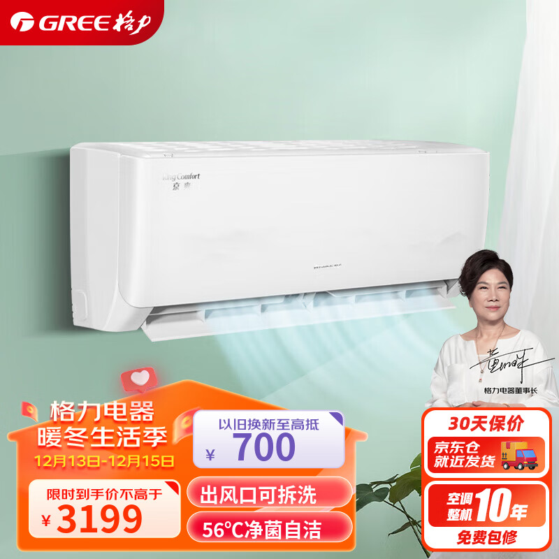 格力(GREE)1.5匹 京爽 新一级能效 变频冷暖 高温自清洁 壁挂式空调挂机KFR-35GW/(35587)FNhAd-B1价格:3199.00元!