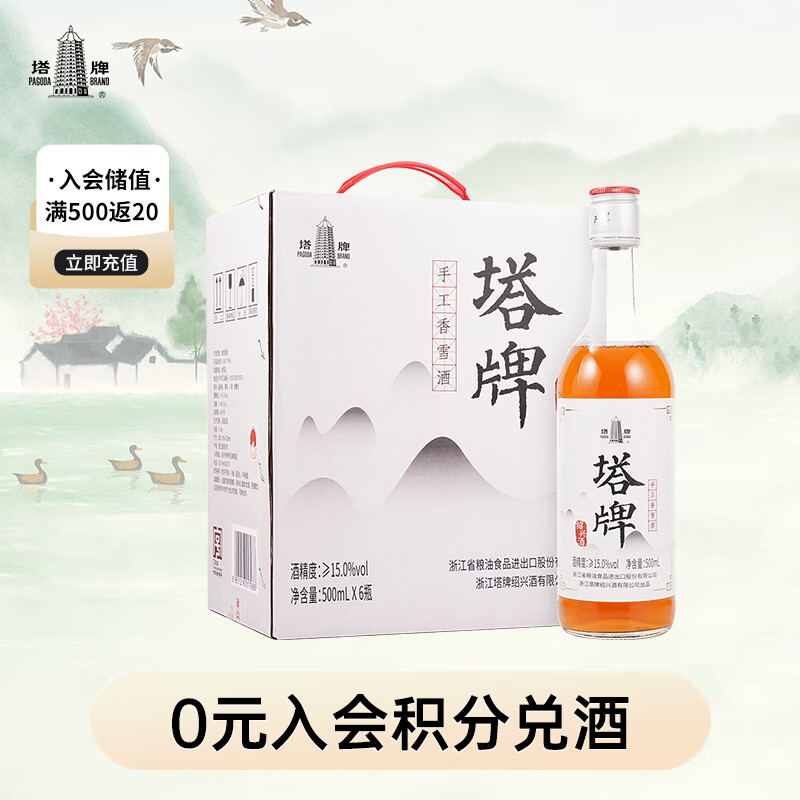 塔牌 香雪 传统型甜型 绍兴 黄酒 500ml*6瓶 整箱装价格:138.00元!