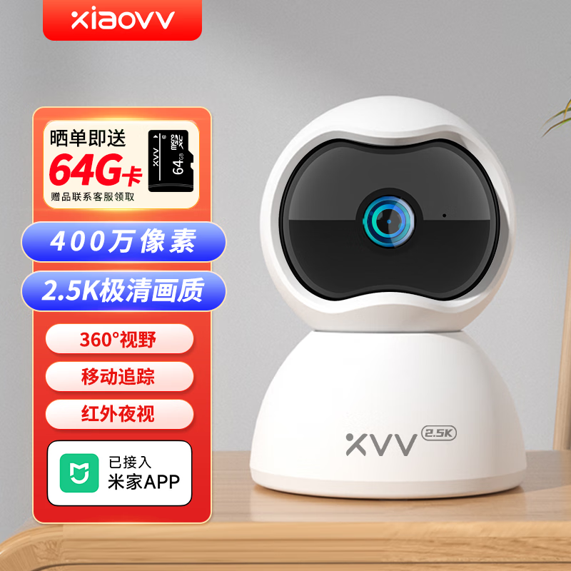 xiaovv智能云台摄像头家用室内手机远程米家监控器家庭看家监视器客厅可对话360度全景高清网络办公室价格:159.00元!