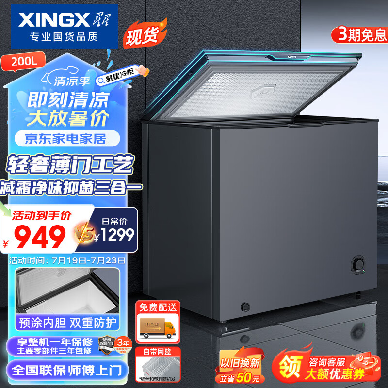 星星(XINGX)200升家用商用减霜净味薄门冰柜 冷藏冷冻转换冷柜 节能顶开冰箱 BD/BC-200KE价格:899.00元!