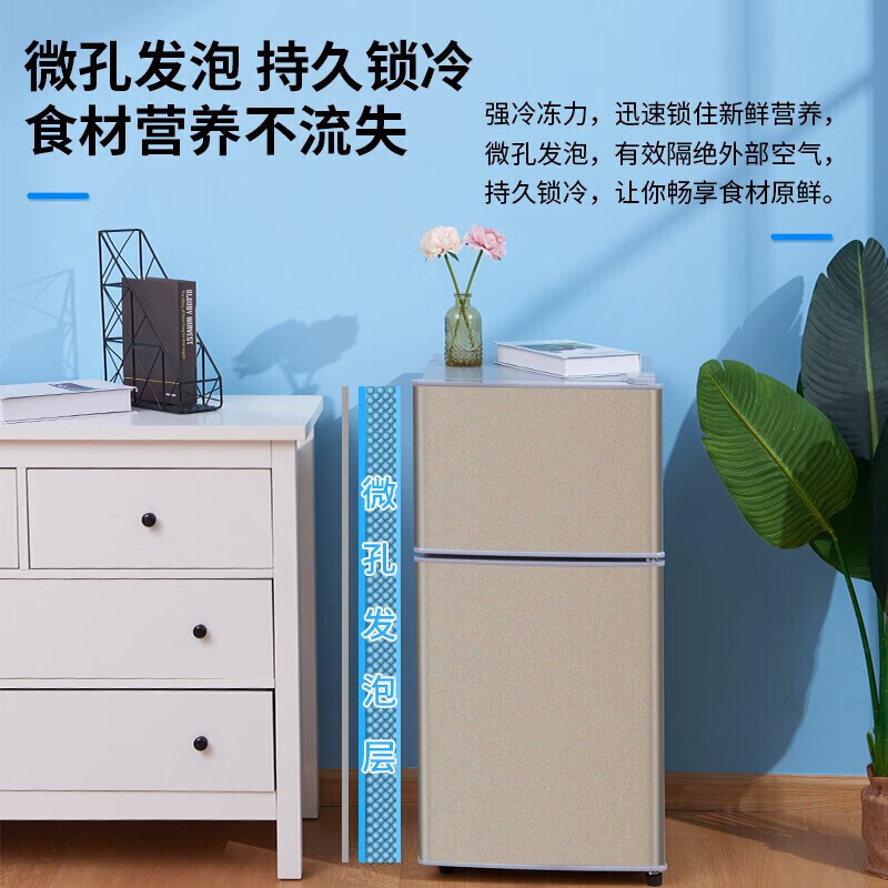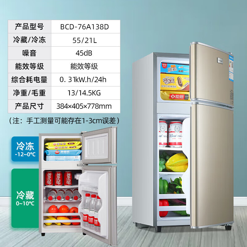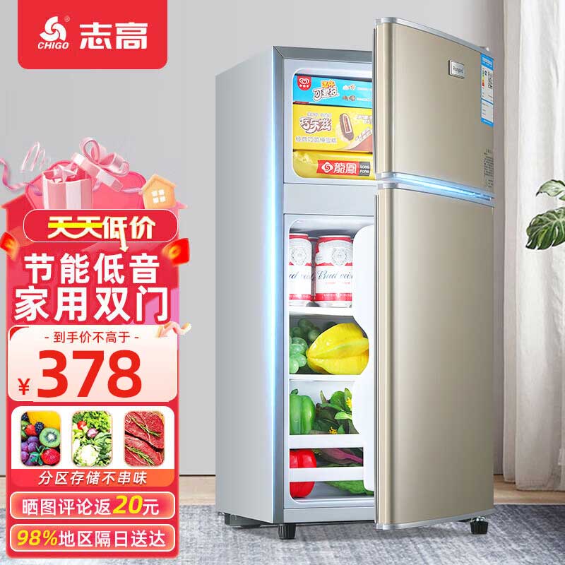 志高(CHIGO)小冰箱双门宿舍租房家用冷藏冷冻双开门迷你电冰箱节能保鲜小冰箱 BCD-76A138D金色价格:398.00元!