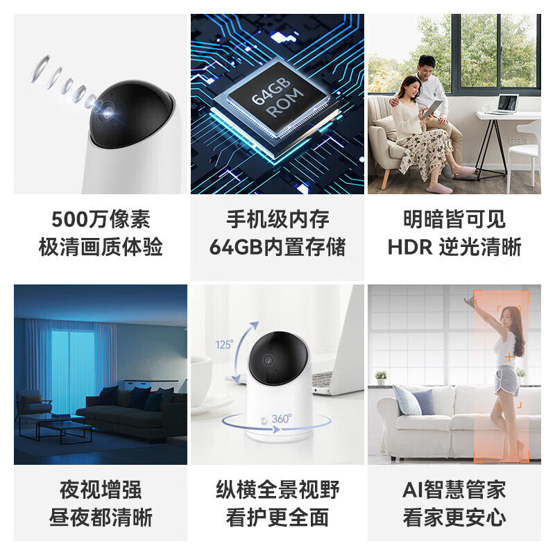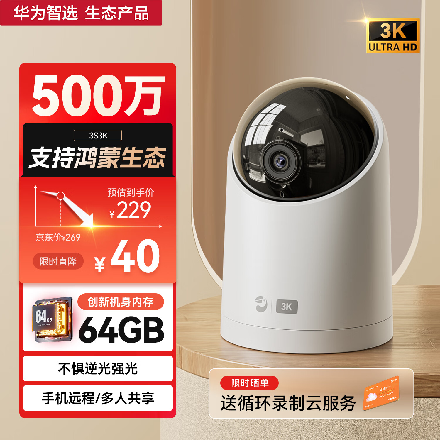 华为智选升级3K500万摄像头监控家用360度无死角带夜视全景手机远程智能门口庭院室内婴儿宝宝宠物看护云台价格:269.00元!