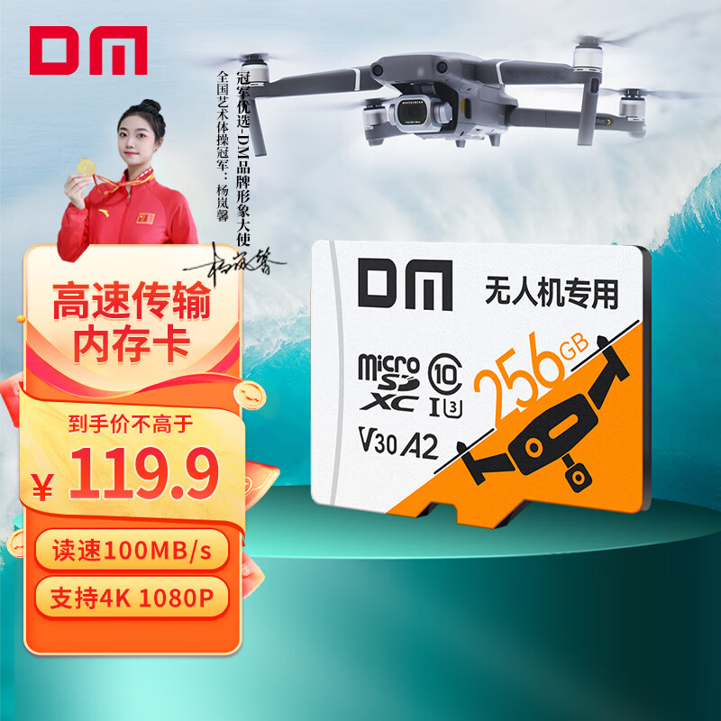 DM大迈 256GB TF(MicroSD)存储卡 无人机卡 A2 V30 U3 读速120MB/s 超清4K 高速内存卡 白卡价格:139.90元!