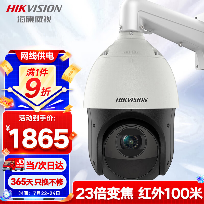 HIKVISION海康威视监控器摄像头400万2K高清360°云台旋转智能室外防水变焦网线供电红外巡航球机4423IW-DE价格:2106.00元!