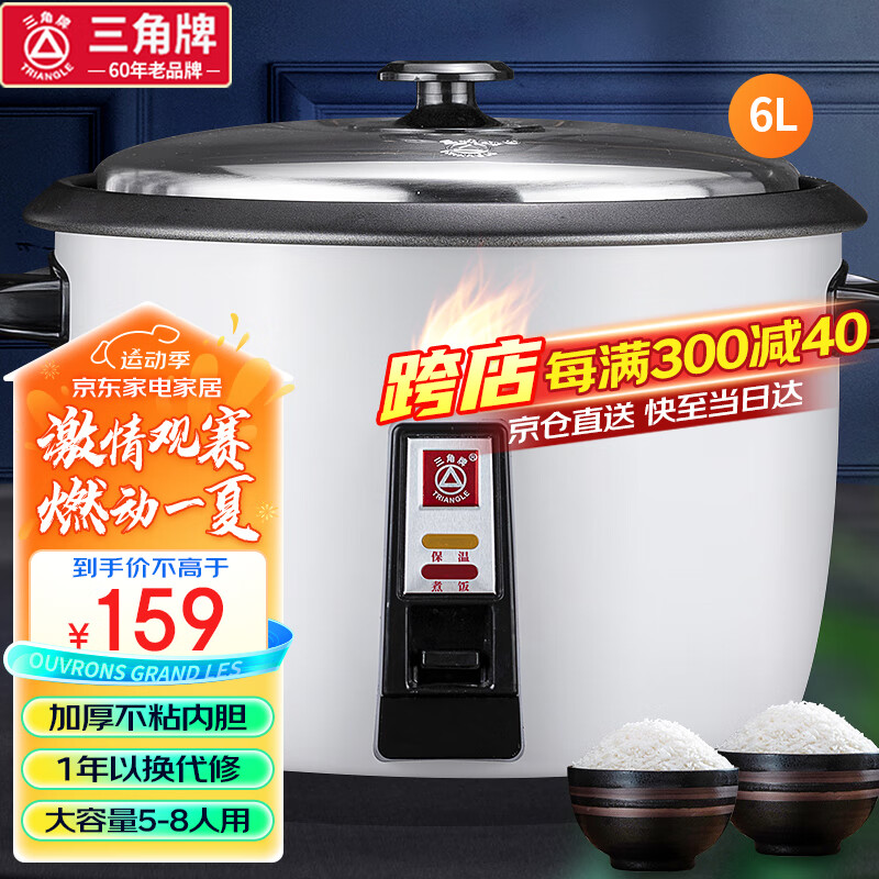 三角牌(Triangle)电饭煲老式电饭锅大容量带蒸笼柴火饭米饭锅鼓型锅小煮饭锅白色 5-8人用 6L价格:159.00元!