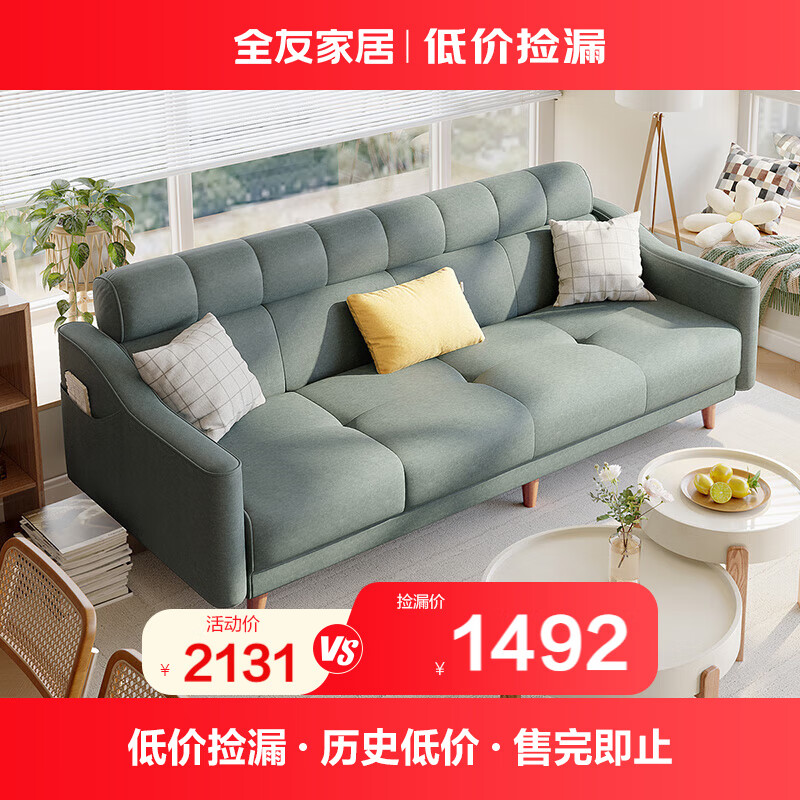 全友家居 北欧简约科技布艺沙发客厅三人位小户型可折叠沙发床102265价格:2131.43元!