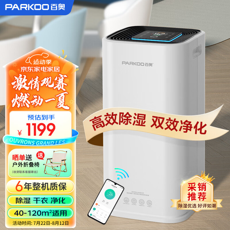 百奥(PARKOO)除湿机/抽湿机 24L大除湿量 APP手机控制 干衣净化家用地下室抽湿器别墅卧室除湿器PD253D价格:1069.00元!