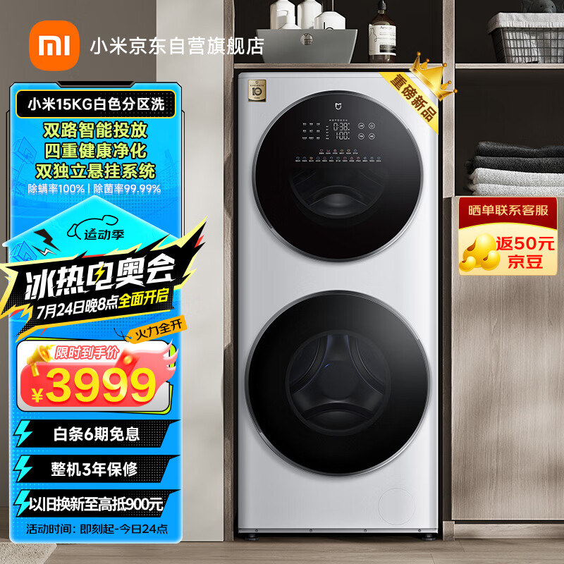 米家小米15KG子母双筒分区洗衣机洗烘一体滚筒全自动白色 直驱变频高温洗空气洗XHQG150MJ205价格:3999.00元!