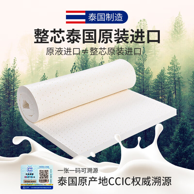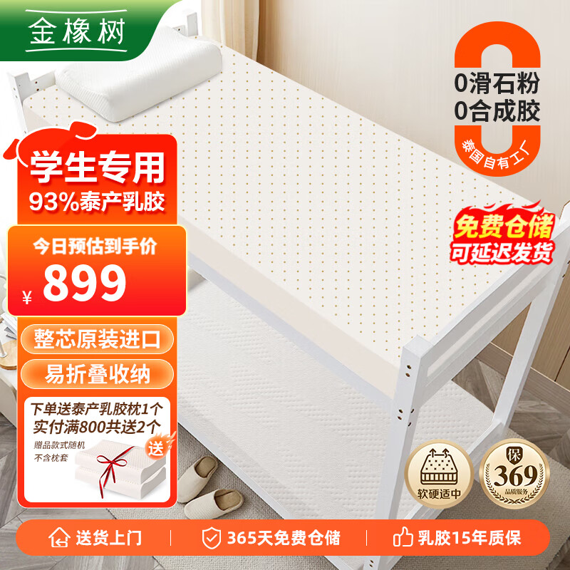金橡树泰国原产整芯进口天然乳胶床垫宿舍学生单人床垫 90*200*7.5cm价格:989.00元!
