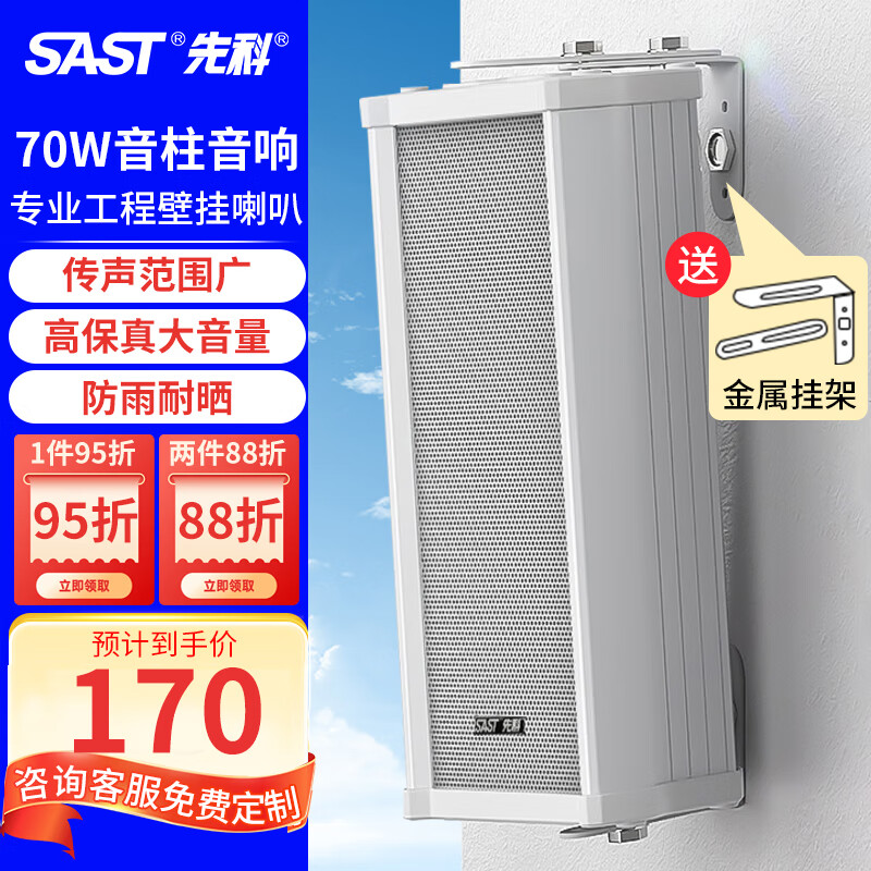 先科(SAST) 室外防水音柱音响 户外定压壁挂音箱学校店铺公共广播喇叭 70W价格:199.00元!