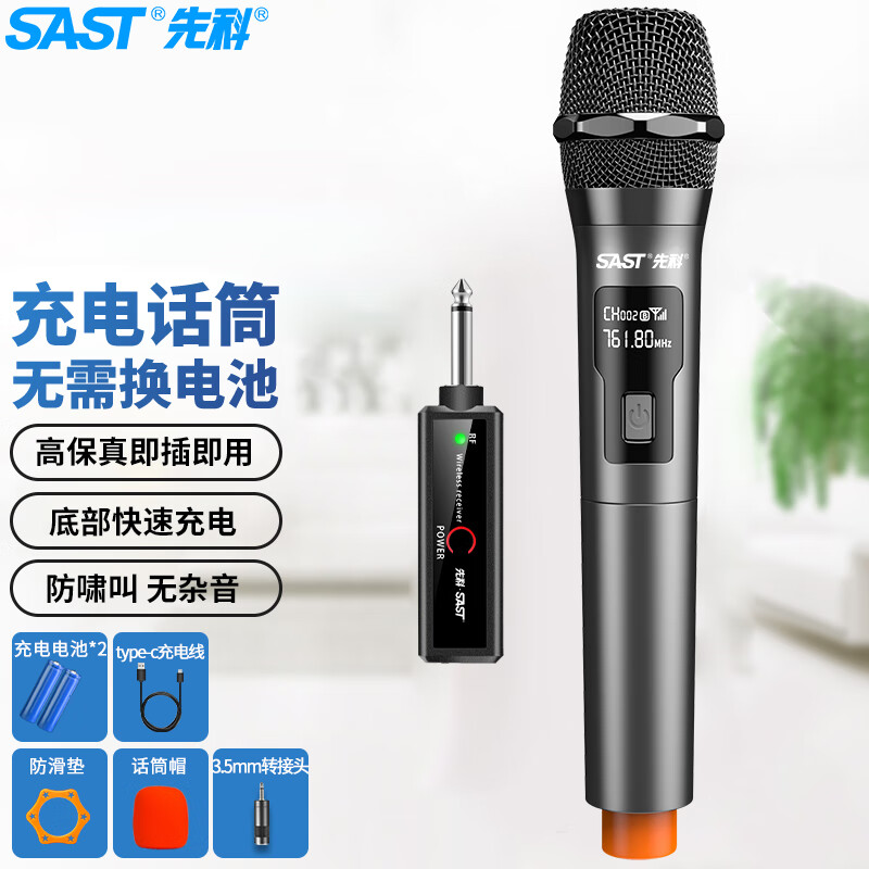 先科(SAST) 可充电锂电池无线麦克风舞台专业家用ktvk歌唱歌演讲会议户外音箱电视车载通用OK-62单只价格:109.00元!