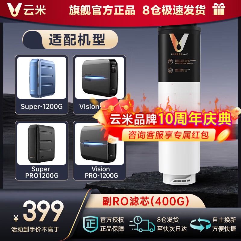 云米(VIOMI)云米净水器滤芯Super1000G/1200G /Super Pro、Vision Pro 1200G 澎湃、Easy3系列通用滤芯 RO膜400G(Super、Vision1200价格:399.00元!