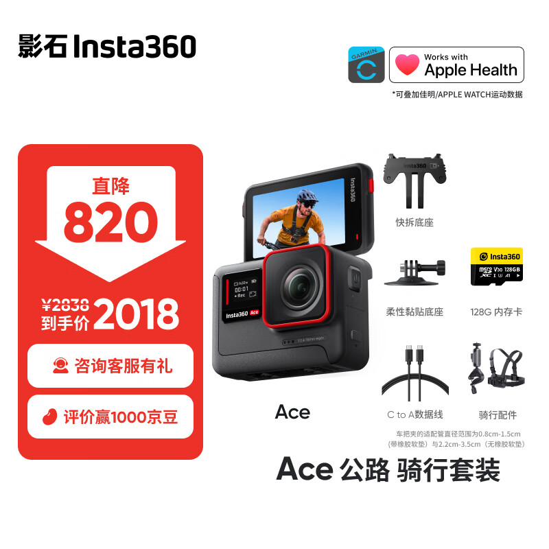 Insta360影石 Ace 旗舰影像AI运动相机 防抖摩托车骑行潜水Vlog摄像机(公路骑行套装)价格:2018.00元!