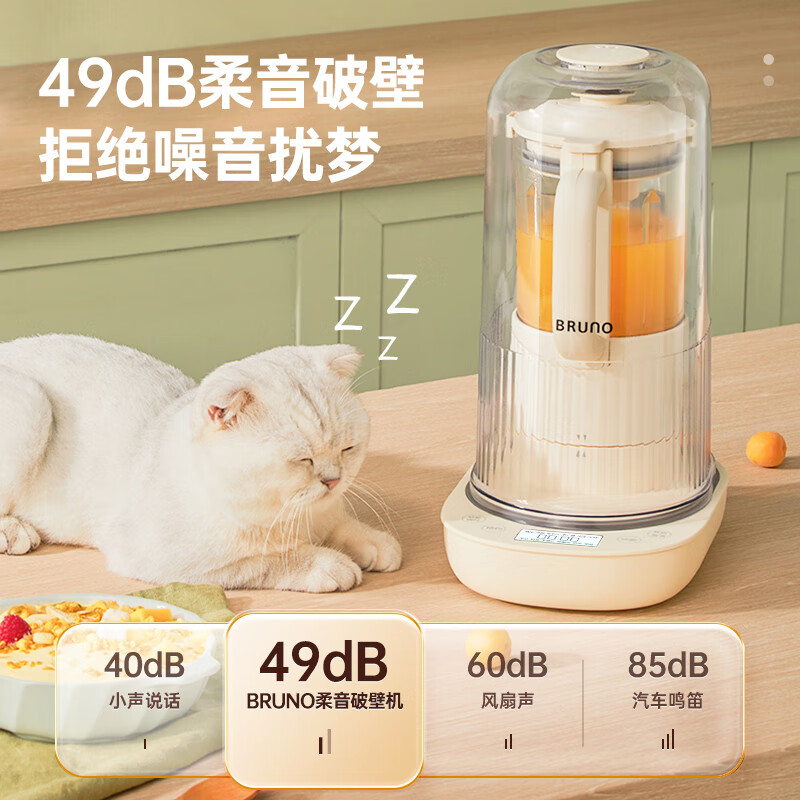 BRUNO柔音破壁机1.2L家用豆浆机小型容量加热免洗全自动榨汁搅拌机静音辅食养生壶早餐料理机薄荷绿价格:379.00元!