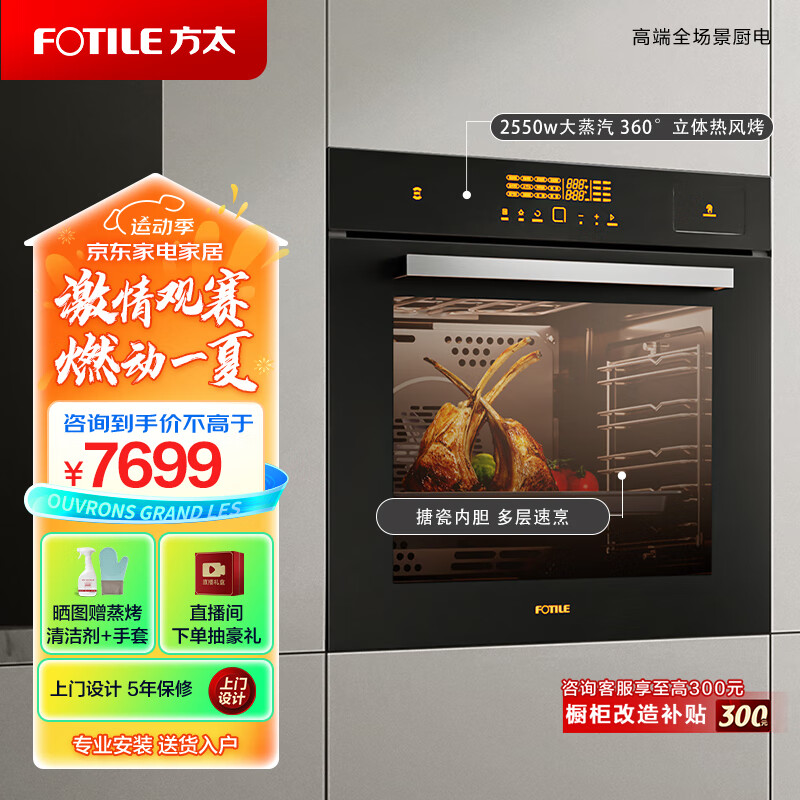方太(FOTILE)蒸烤箱一体机嵌入式 76L*大容量 搪瓷内胆 蒸烤炖炸一体机 wifi智联 智能菜谱 ZK72-ES20.i价格:7699.00元!