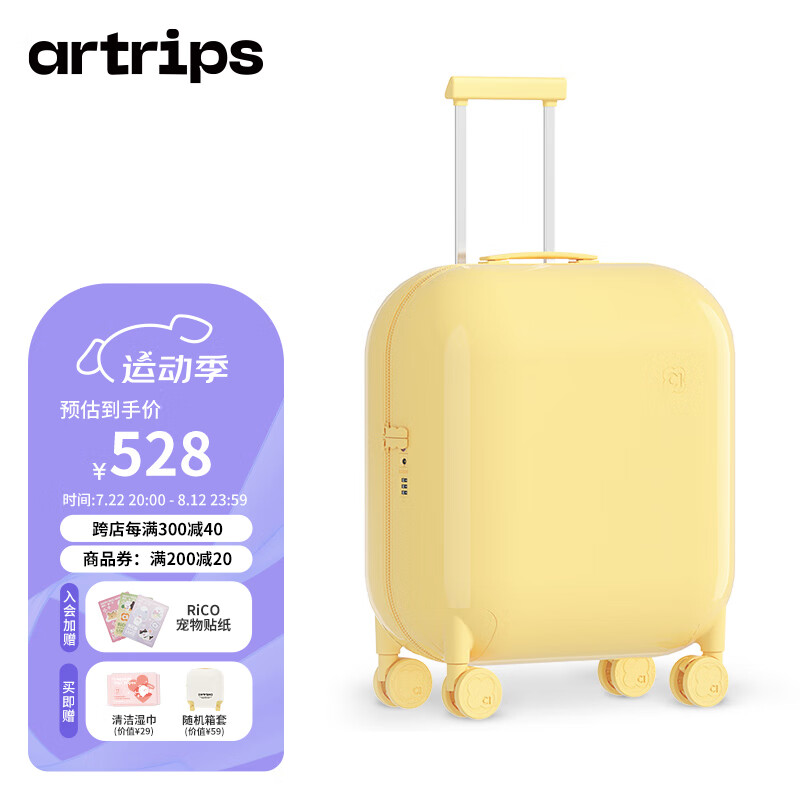 artrips行李箱泡泡款拉杆箱女20英寸登机高颜值低音万向轮旅行箱 暖阳黄价格:678.00元!