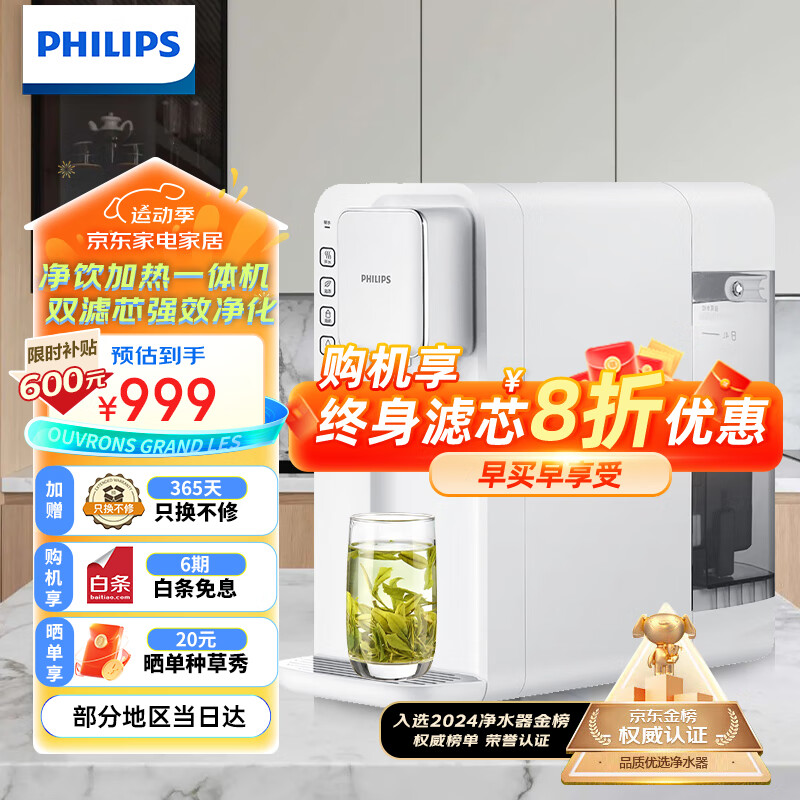 飞利浦(PHILIPS)净水器家用 净水器加热直饮一体机 台式免安装即热直饮水机 RO反渗透净水器双芯5L大水箱ADD6812 家庭款价格:1599.00元!